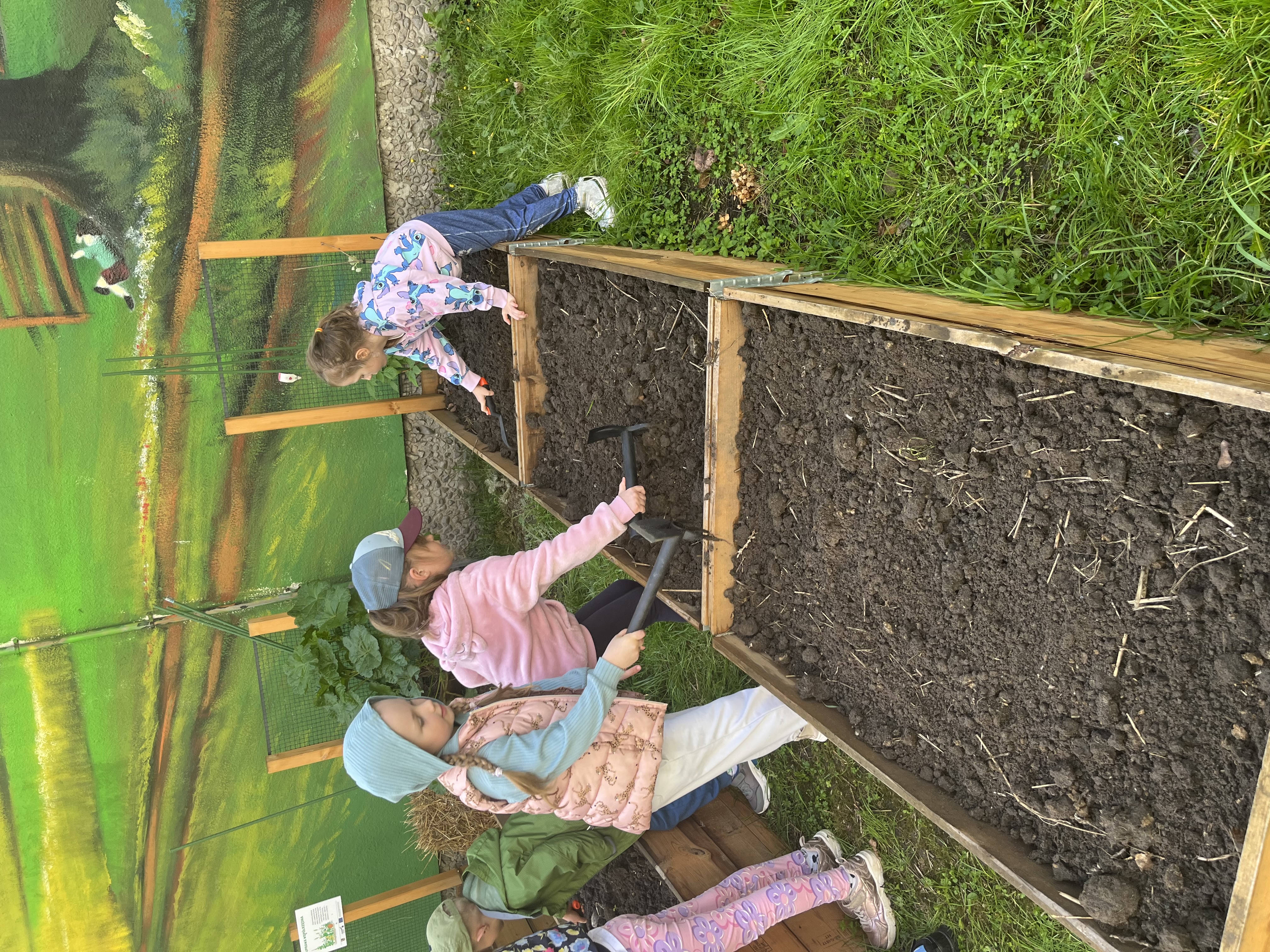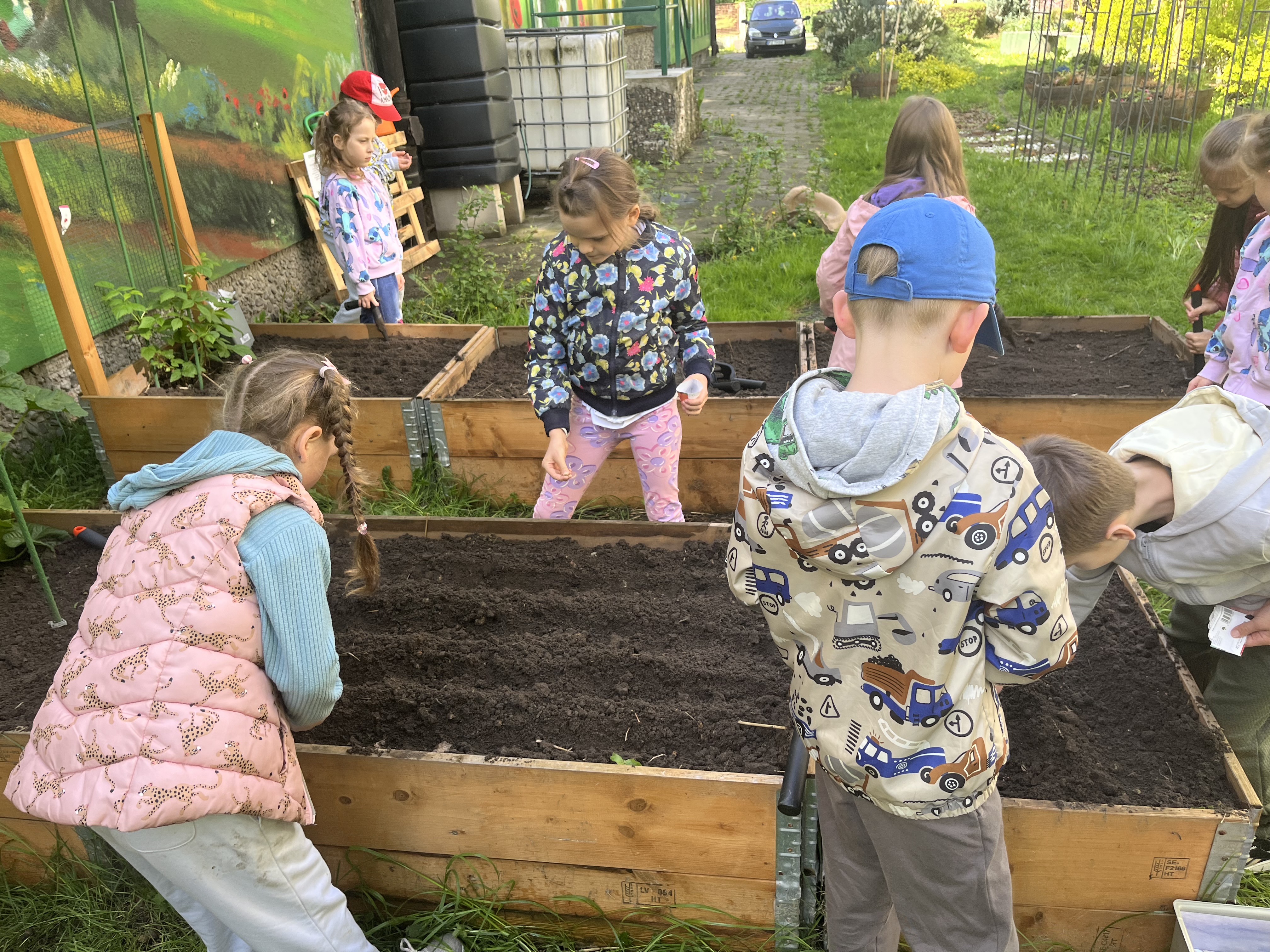 Grupa IV oficjalnie otworzyła sezon ogrodowy. Podczas zajęć dzieci przekopywały grządki , wyznaczały miejsca do siania i wysiewały warzywa takie jak fasola, papryka, ogórki, cukinia, rzodkiewka, cebula.