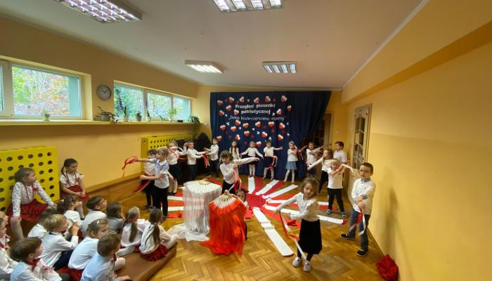 Dzieci z grupy IV reprezentowały nasze przedszkole na Międzyprzedszkolnym Przeglądzie Piosenki Patriotycznej organizowanym przez Przedszkole Niepubliczne Językowo-Muzyczne Wesołe Nutki.