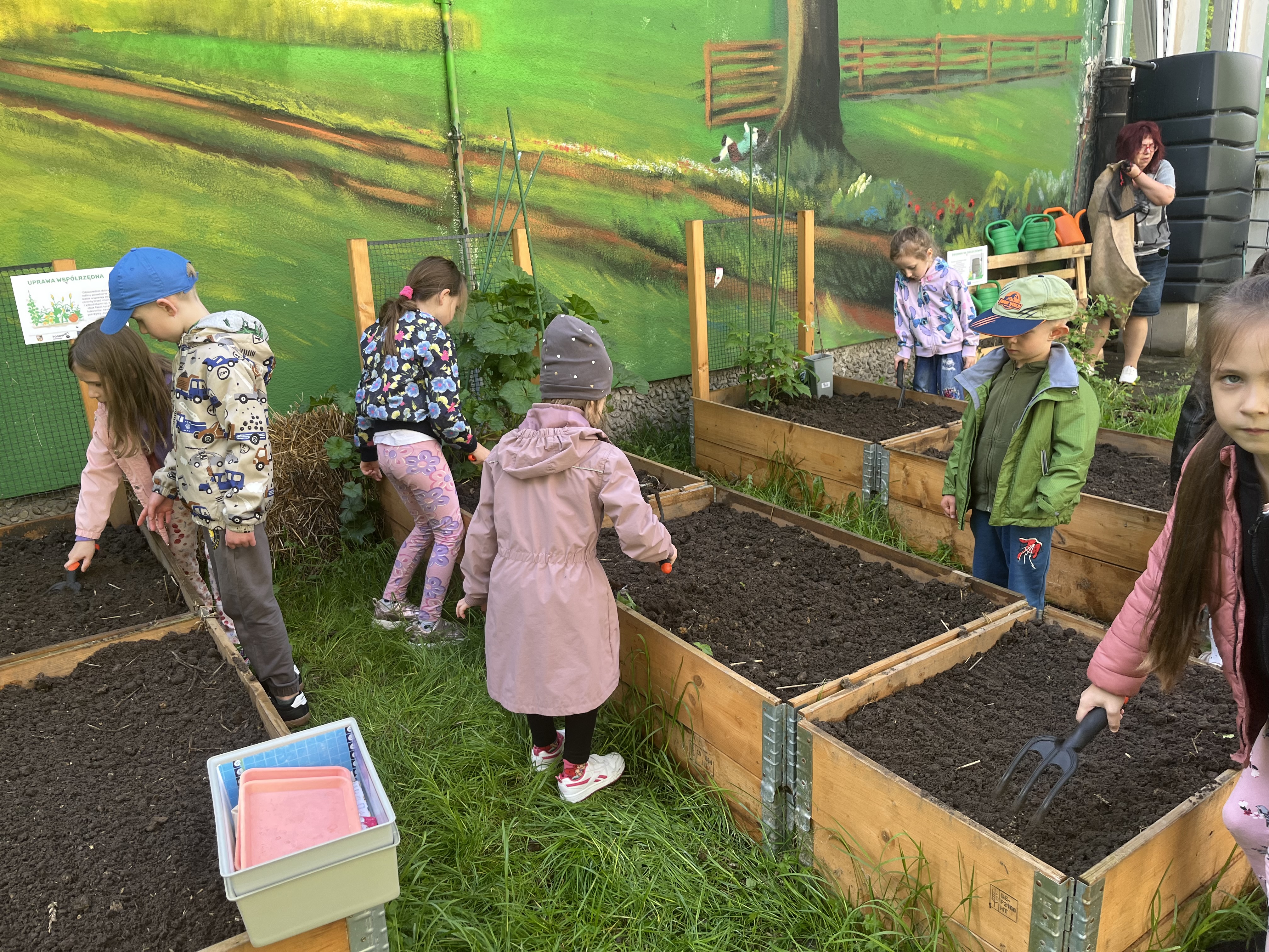 Grupa IV oficjalnie otworzyła sezon ogrodowy. Podczas zajęć dzieci przekopywały grządki , wyznaczały miejsca do siania i wysiewały warzywa takie jak fasola, papryka, ogórki, cukinia, rzodkiewka, cebula.